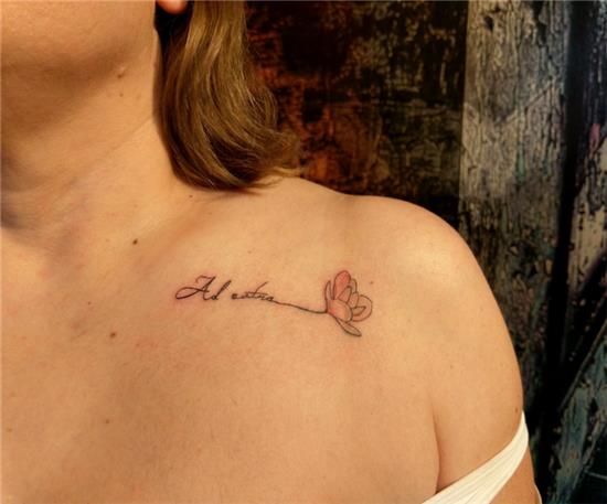 Omuza Yazı ve Çiçek Dövmesi / Latin Word and Flower Tattoo ...